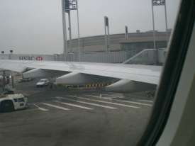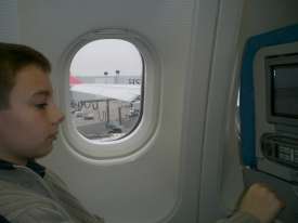 We passed the checkpoint and we are ready to board the plane.