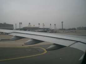 We are waiting to board the plane to Paris.