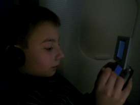 This is the last plane ; in seven hours I'll be at home ! I played Poker with my father on the screen in front of me !