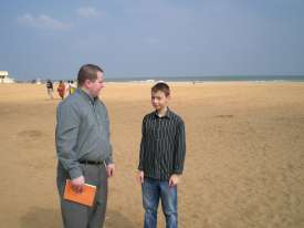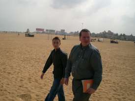 I kicked the sand in the direction of my father :‑)