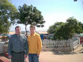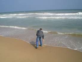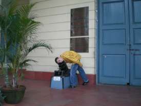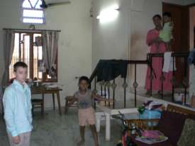 You can see behind me the door of the hotel. This day, we were waiting for the car to go to Mahabalipuram.